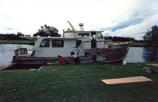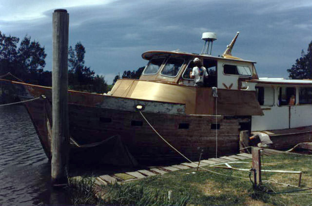 - Main stringer from bow to stern passing through engine room not thoroughly seasoned and suffers major cross sectional shrinkage this in turn causes side decks to collapse and trap water causing extensive rot.