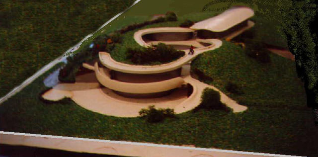 While the complex is sizable in floor area, the landscaped earth-covered roof will be non-visible from the outside. From above, the only sign of the structure will be the paved, recessed courtyards which, like the roof, are designed to blend with the surrounding landscape.